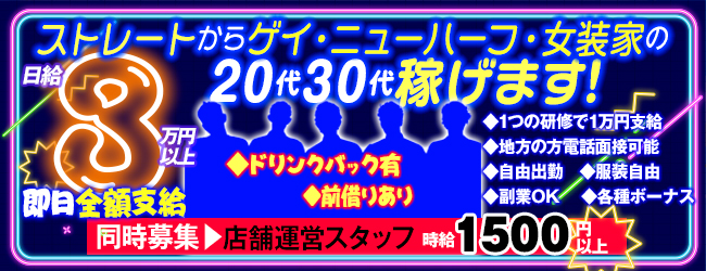 ストレートからゲイ・ニューハーフ・女装家までどなたでもウェルカム!サクッと稼ごう!